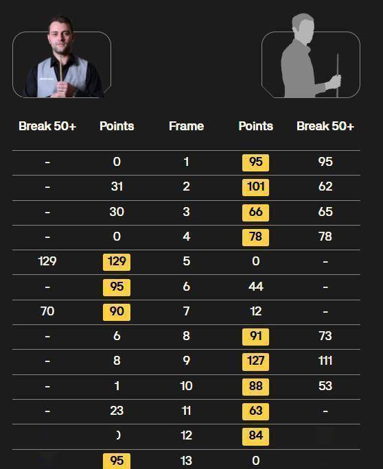 王信伯的参赛资格源于今年在世界斯诺克联合会公开赛中获得的亚军成绩。 面对34岁的曼恩,这位刚满18岁的少年在技术统计上完全占据了上风。 全场比赛,王信伯打出一杆破百和八杆50+,曼恩则只有一杆破百和两杆50+。